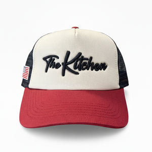 Red, white, and blue structured trucker hat featuring our classic 3D-puffed logo and an American flag patch on the side. Patriotic, clean, and ready for every Fourth of July celebration on and off the pickleball court. Made to stand out with a comfortable fit and timeless look.