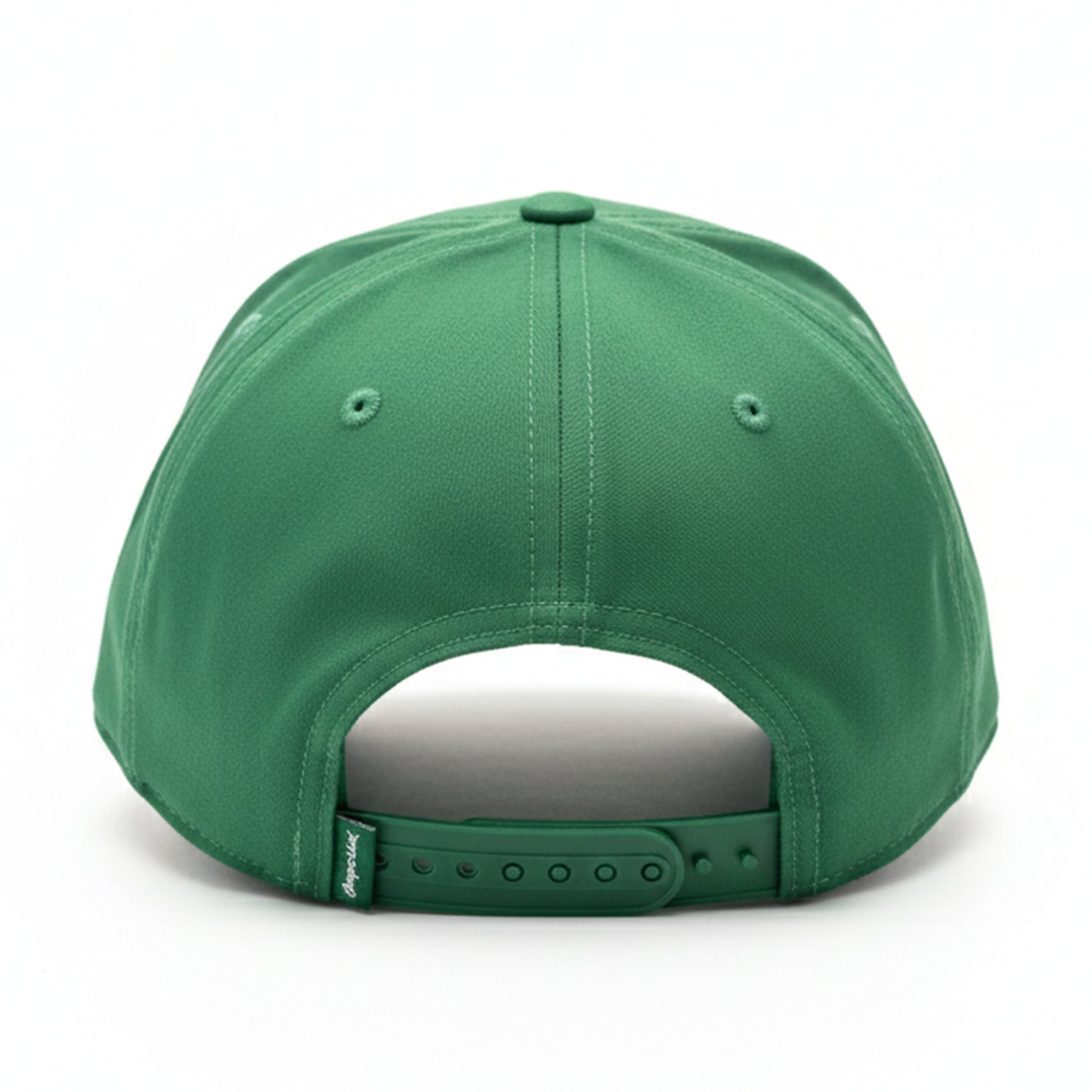 Green structured snapback. White rope with 3D raised embroidery white logo on front.